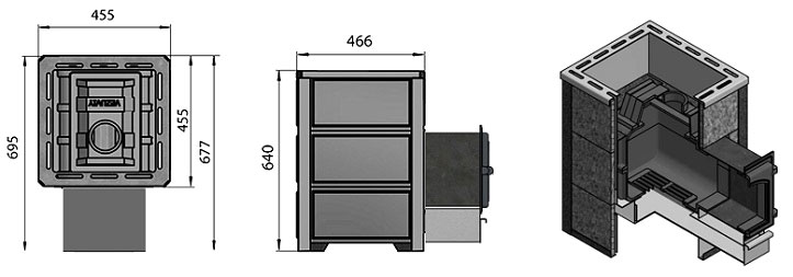 - герметичная топка, состоящая из 3-х чугунных элементов